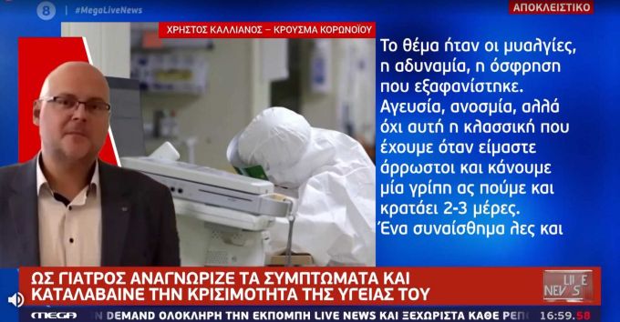Ο καρδιολόγος – ηλεκτροφυσιολόγος, Χρήστος Καλλιάνος, περιγράφει κι ο ίδιος στο MEGA και στην εκπομπή Live News με τον Νίκο Ευαγγελάτο πώς κατάφερε να βγει νικητής στη μάχη του με τον Covid19.