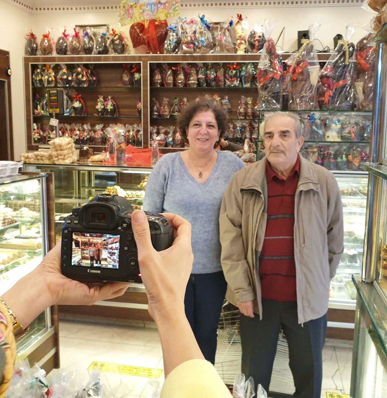 Οι πελάτες χαιρετούν ο ένας τον άλλον στα Αρμενικά και τα Ελληνικά, ενώ η Χούλια απαντά στο τηλέφωνο και ταυτόχρονα τυλίγει ταχυδακτυλουργικά τα τσουρέκια σε λευκό και χρυσό χαρτί και τα δένει με κόκκινη κορδέλα.